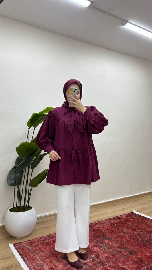 Fiyonklu Salaş Tesettür Gömlek - Bordo