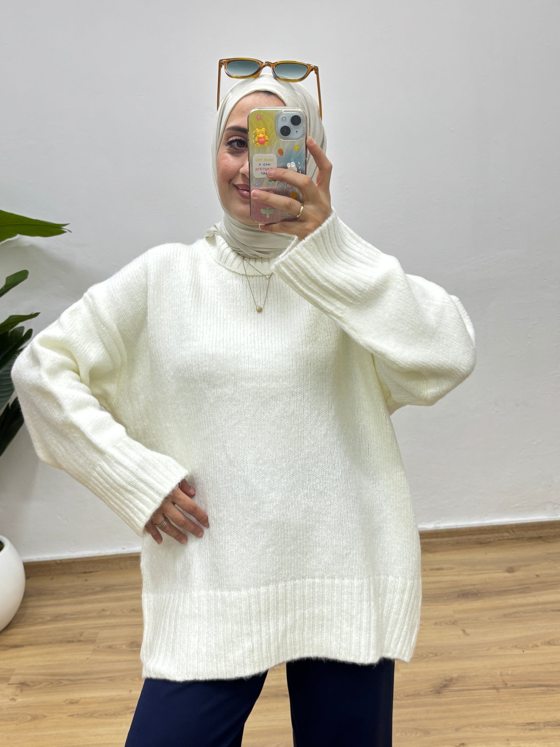 Oversize Bisiklet Yaka Kazak - Ekru