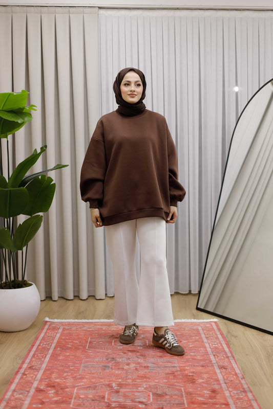 Oversize 3 İplik Şardonlu Sweat - Kahverengi
