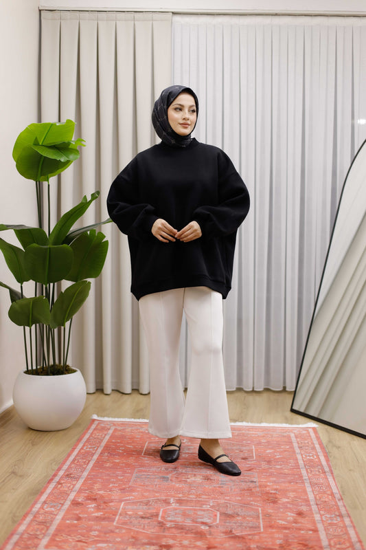 Oversize 3 İplik Şardonlu Sweat - Siyah