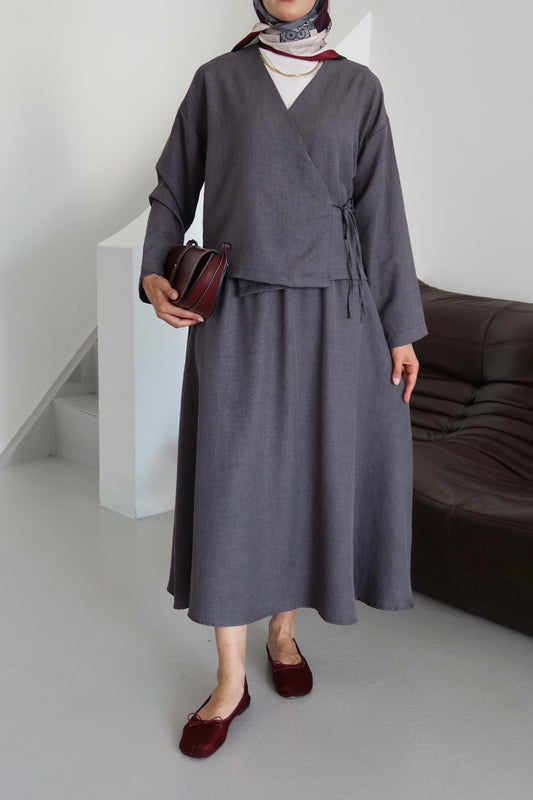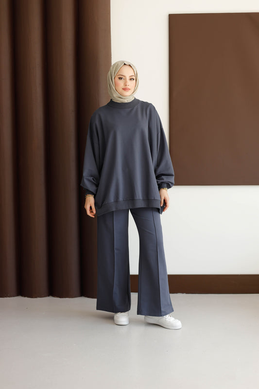 Esnek Ve Yumuşak Dokulu Oysh Tesettür Takım - Antrasit