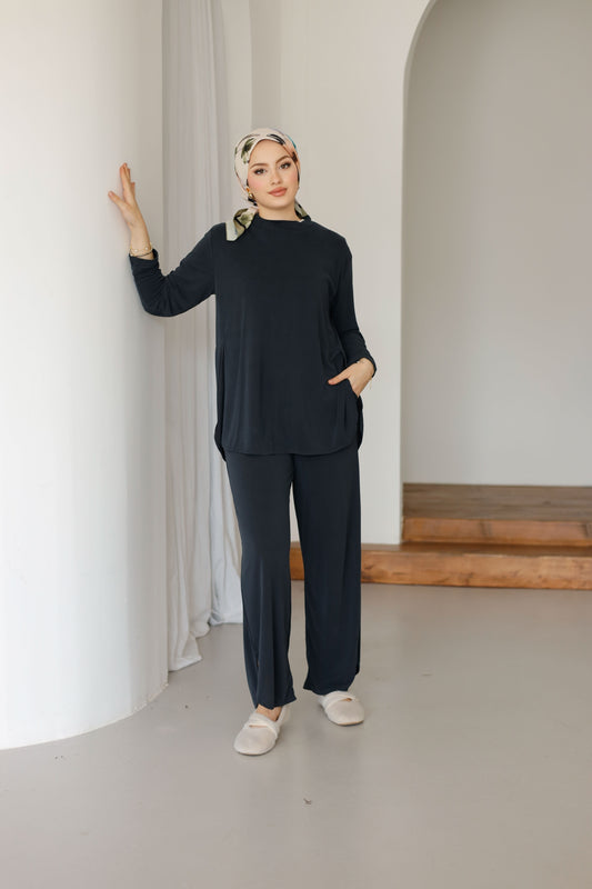 Esnek Ve Yumuşak Dokulu Oysh Tesettür Takım - Lacivert