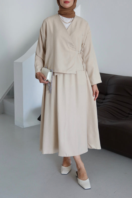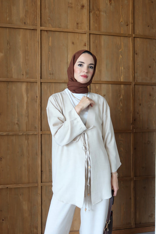 Kurdela İp Detay Etekli Tesettür Takım - Sarı