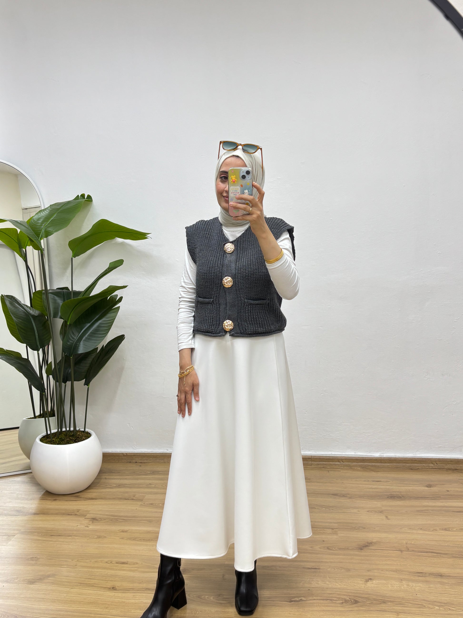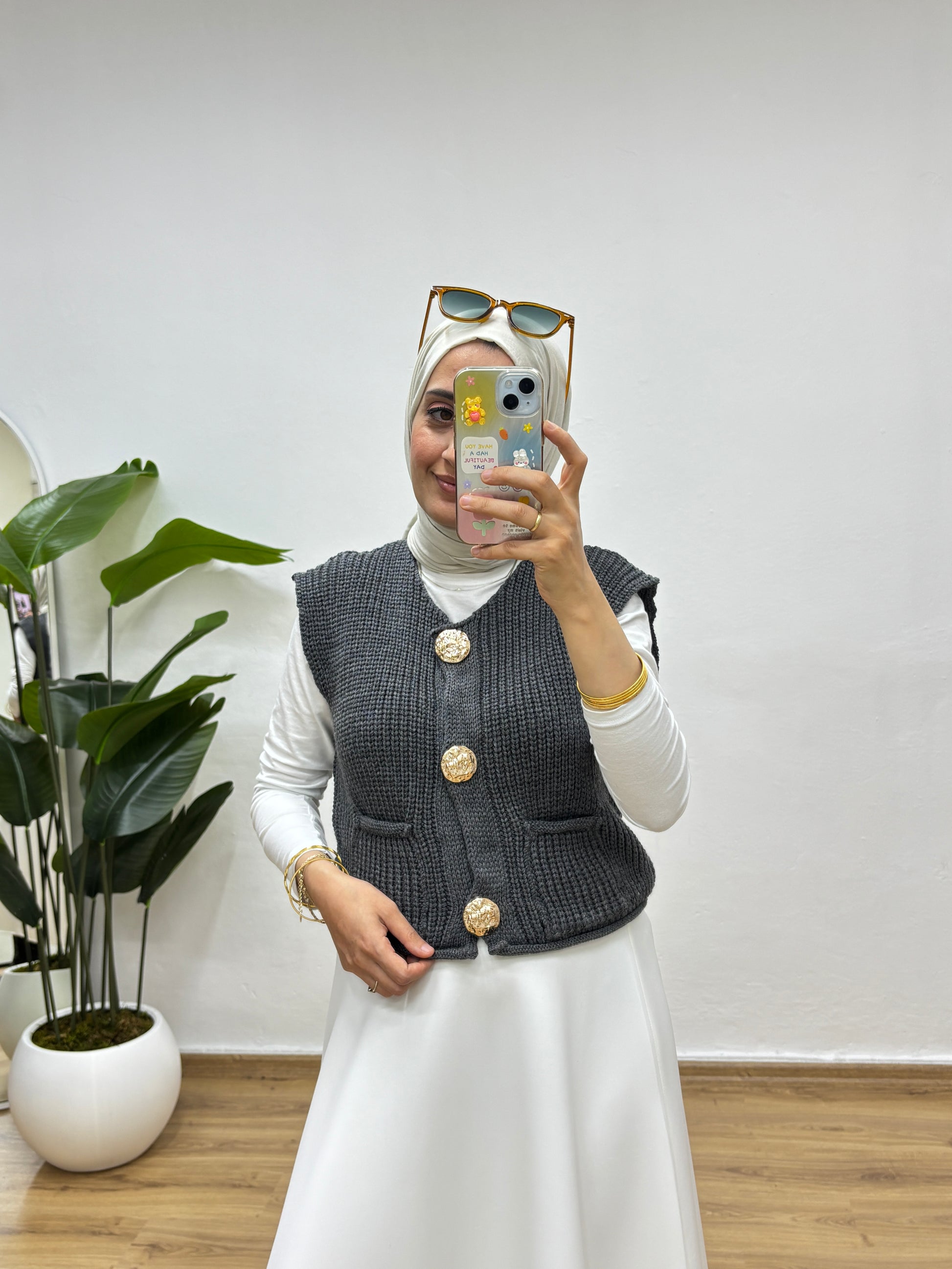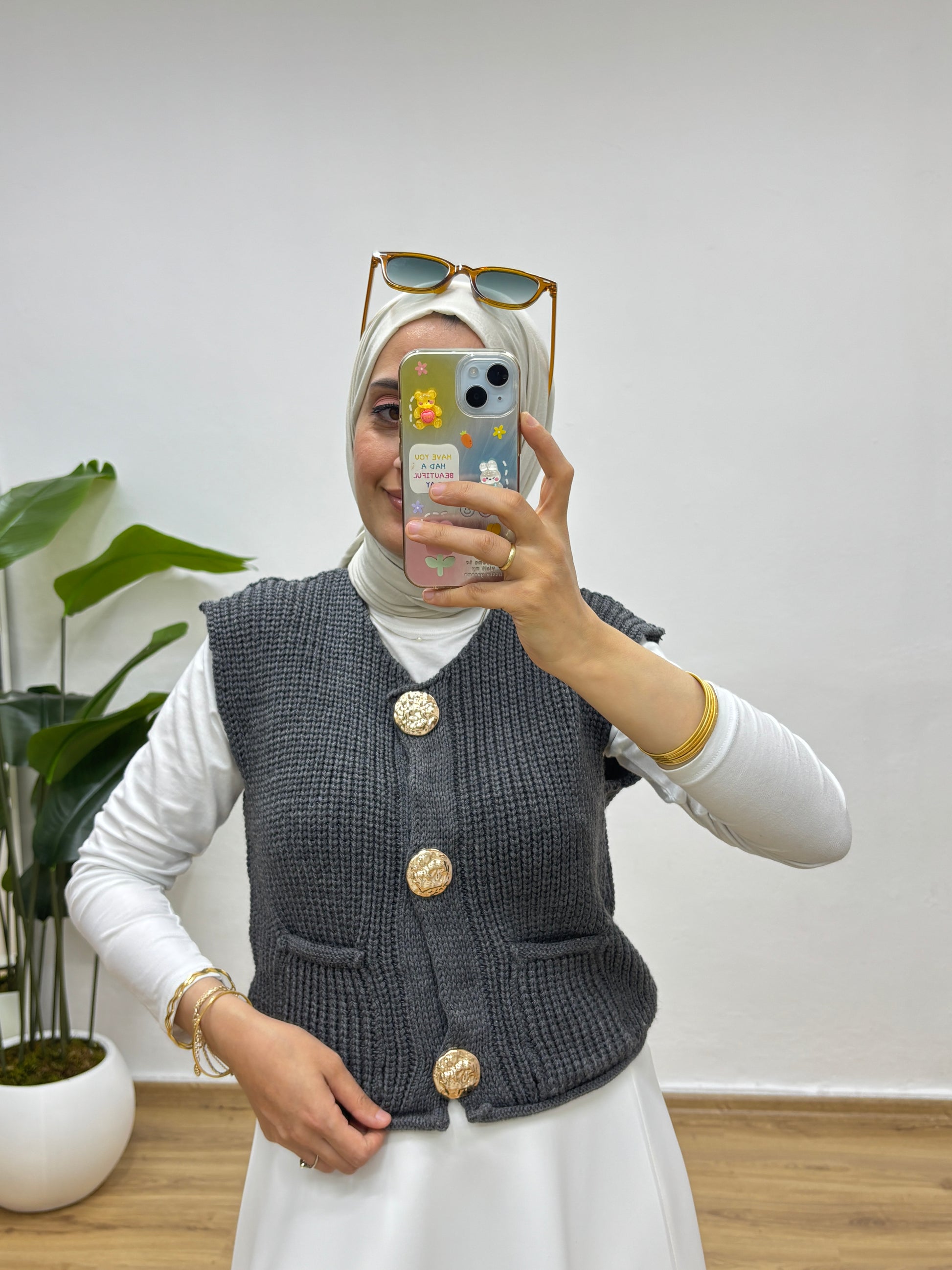 Gold Düğmeli Cepli Triko Yelek - Antrasit