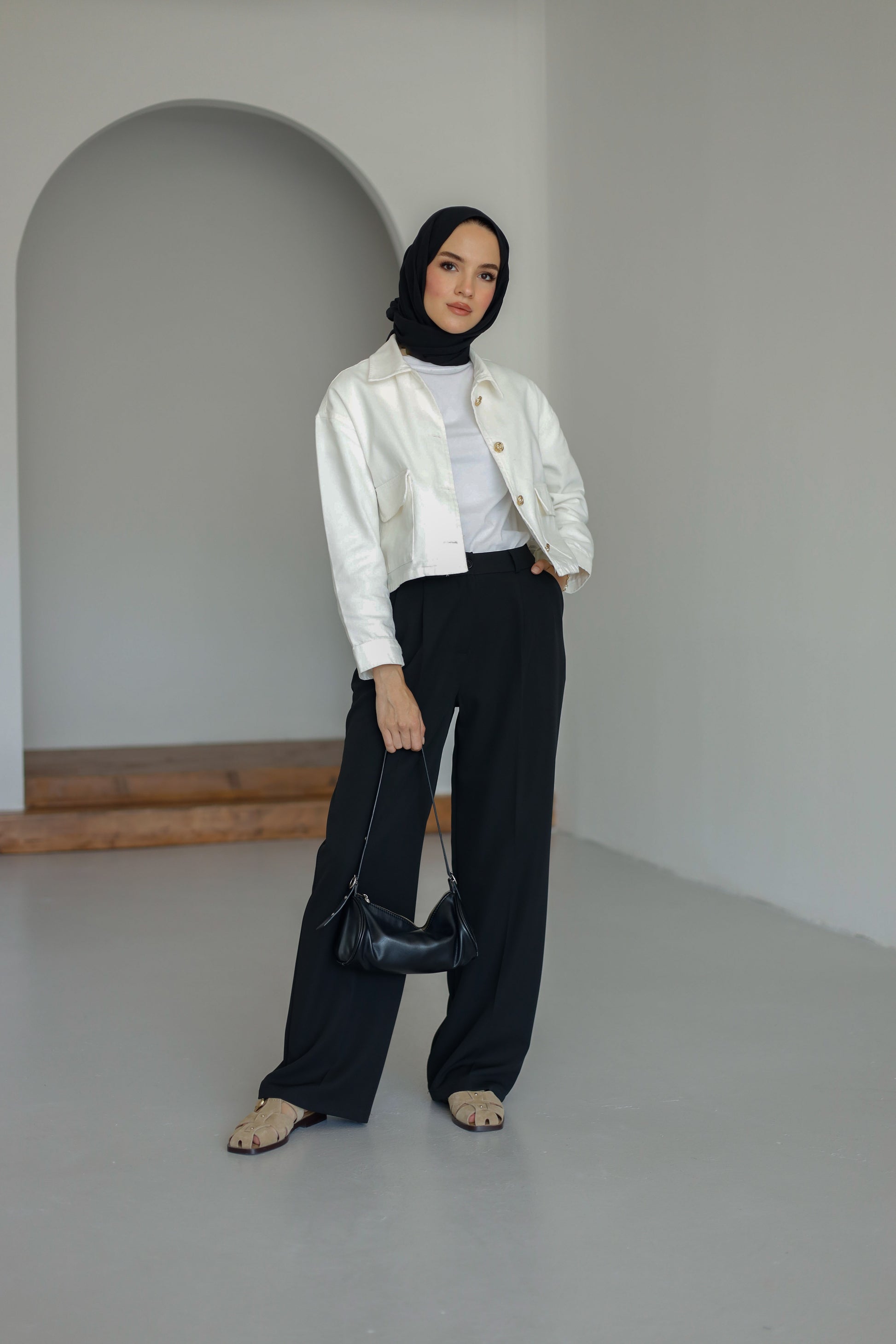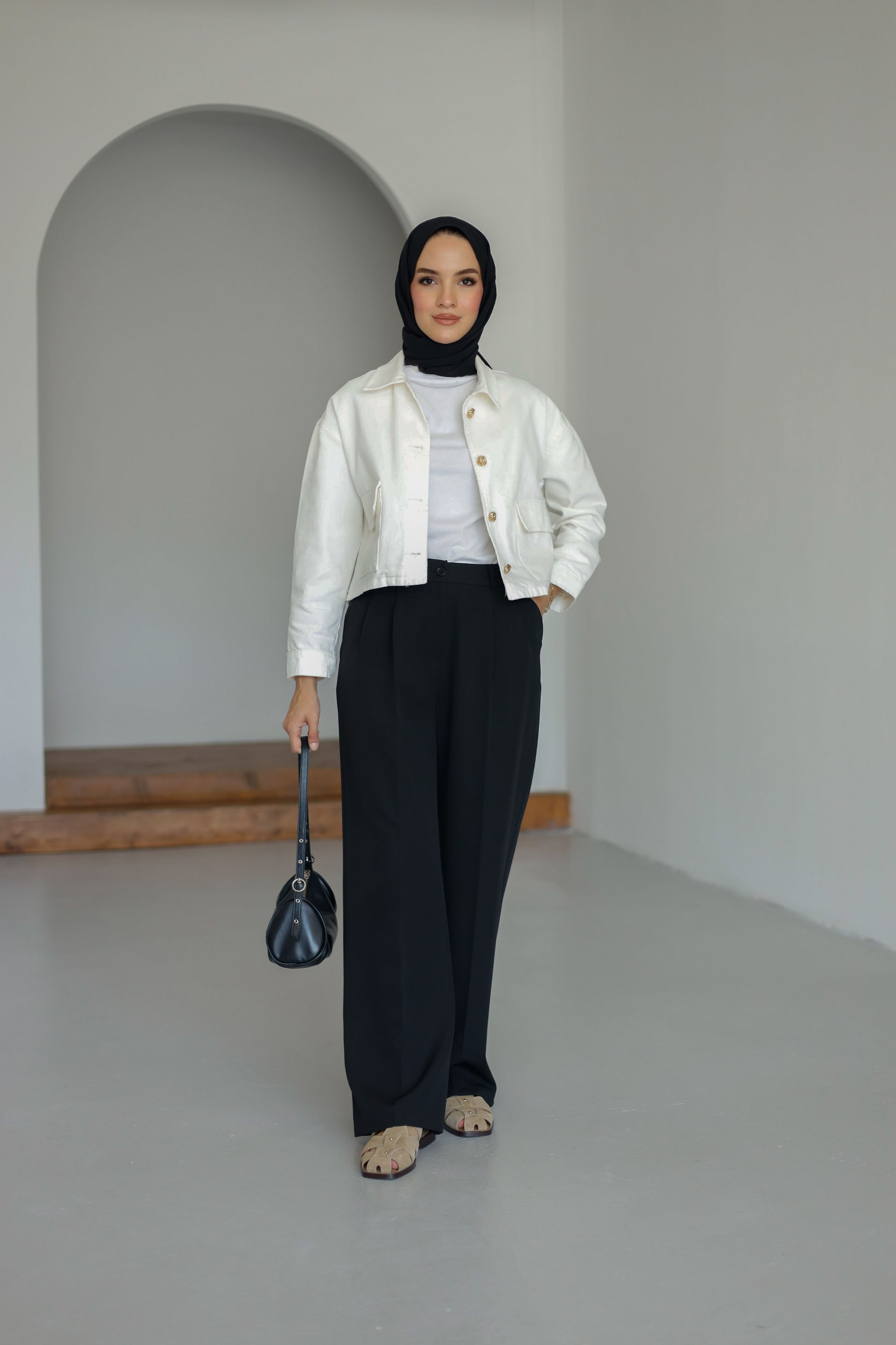 Yüksek bel tasarımı ile şık ve modern bir duruş sunar.